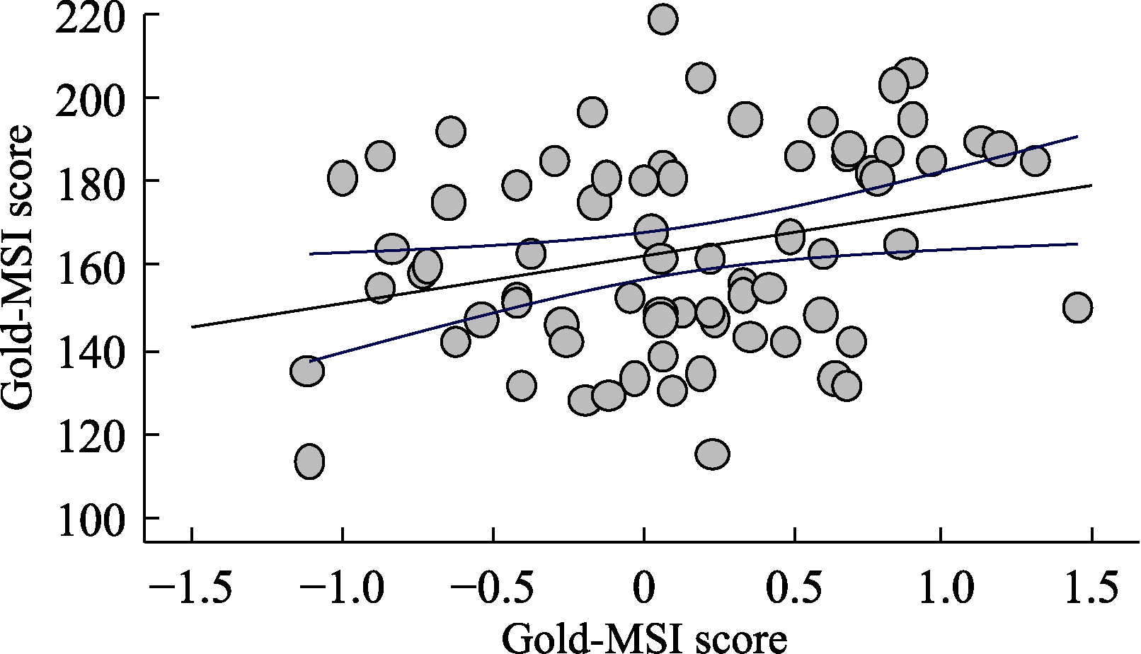 | Gold-MSI | 183.72 (13.66) | 143.22 (12.11) | 13.31 | < 0.001 | 3.14 | [34.43, 46.57] |