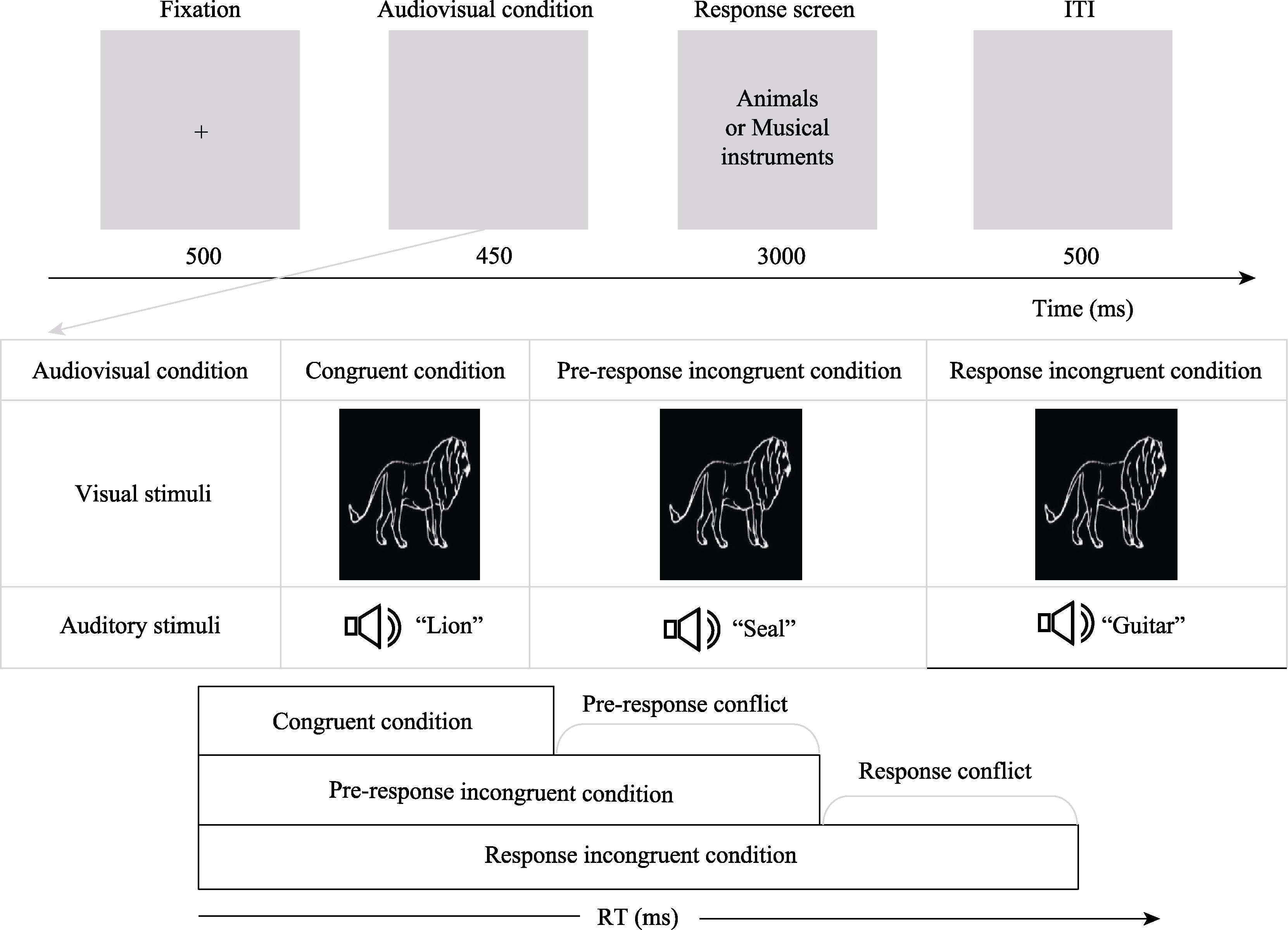 Key words: object category, visual dominance, auditory dominance, pre-response level, response level