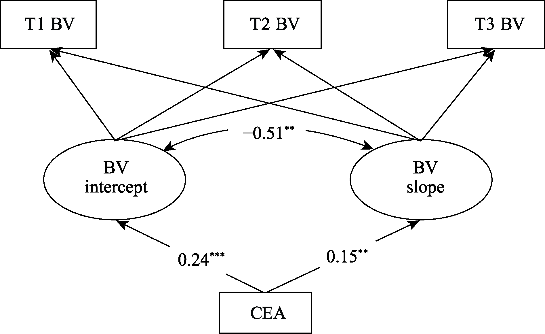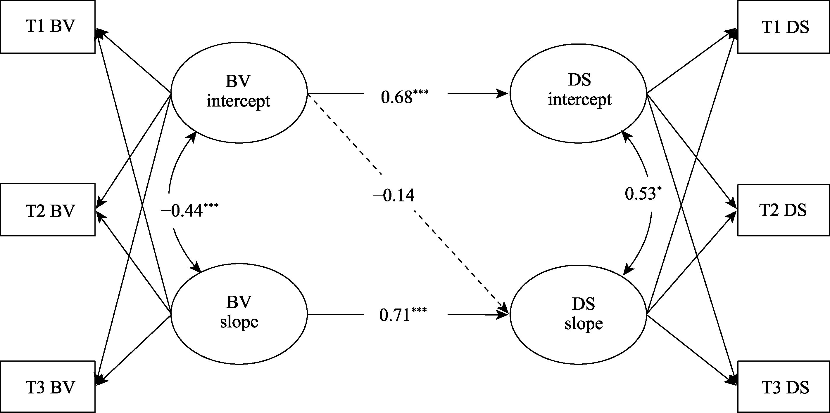 | 5. T2 BV | 1.24 | 0.50 | -0.06 | 0.02 | 0.21* | 0.32* | 1 | ||||