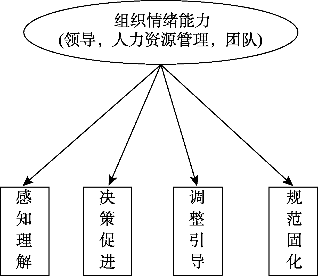 Study 1 develops a valid measurement tool for OEC that captures its intrinsic nature and resolves the circularity problem in prior scales (e.g., Huy’s emotion-derived framework). Drawing on individual emotional intelligence theory at the organizational level, it identifies three primary OEC carriers—leadership, strategic human resource management, and team interaction—and proposes a four-dimensional model (perception and understanding, decision facilitation, adjustment and guidance, norm solidification) derived from critical incident interviews and grounded theory analysis. Psychometric testing (exploratory and confirmatory factor analyses) confirms the model’s reliability and validity, resulting in an OEC Assessment System. This advancement restores OEC to its essential meaning as emotional capability and enables objective differentiation of OEC levels across organizations.