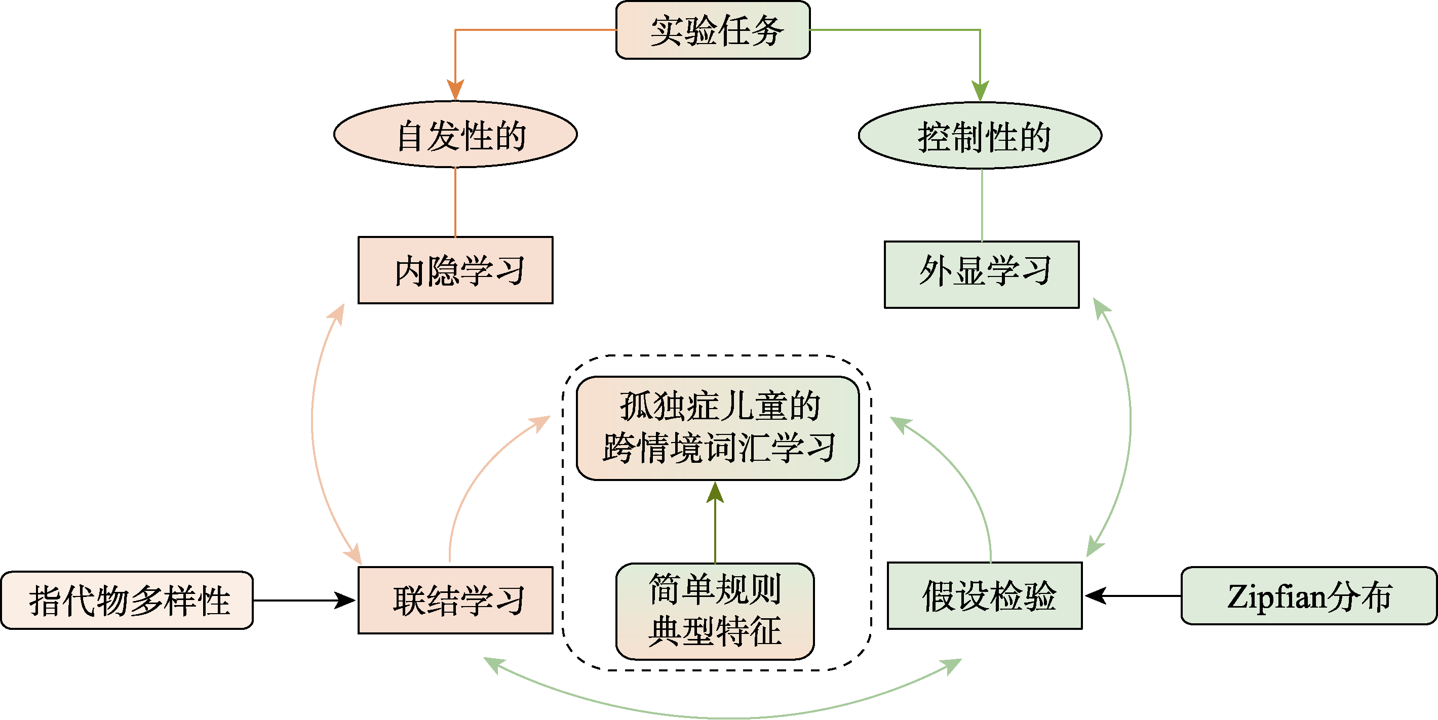 The hybrid synergistic model first reveals the cognitive mechanisms underlying cross-situational word learning in children with ASD and provides instructive implications for intervention. Specifically, the hybrid synergistic model proposes that enhancing referent diversity may improve associative learning, thereby improving the efficiency of cross-situational word learning in children with ASD. When children are exposed to diverse referents for a target word, the children are more likely to form robust and flexible word-referent associations. Additionally, the hybrid synergistic model recommends leveraging Zipfian distribution to optimize hypothesis testing mechanisms. This approach may facilitate the formation of accurate hypotheses about word meanings by providing children with frequent and predictable exposure to high-utility words, thereby mitigating explicit learning deficits.