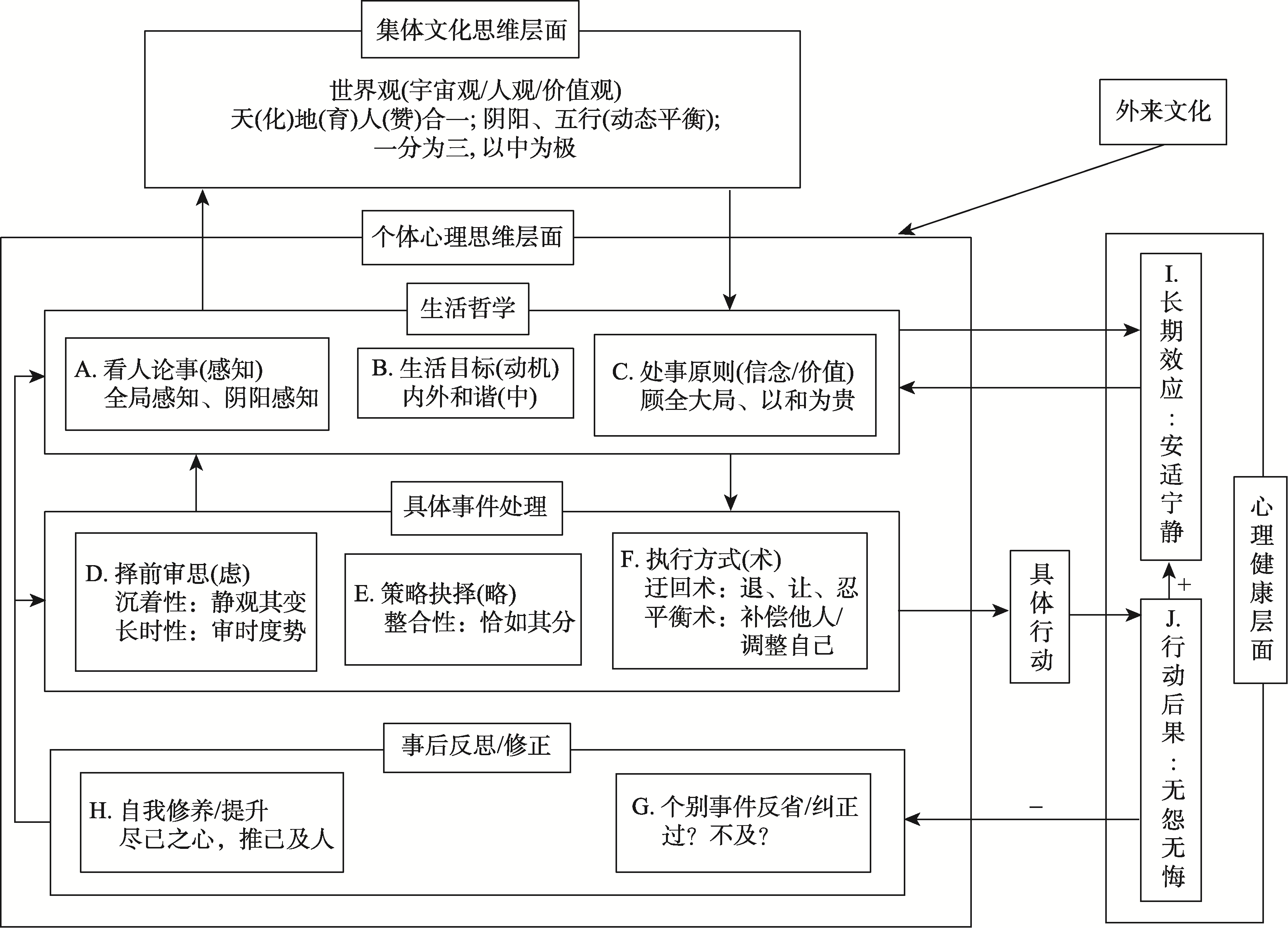 | 中庸信念/价值量表 (黄金兰 等, | 测量价值取向, 自上而下编制, 处理二元关系, 采用迫选法, 共9题。 | 拔高视野:中庸思维中有关用全局及阴阳感知来理解及处理人、事的内容。 |