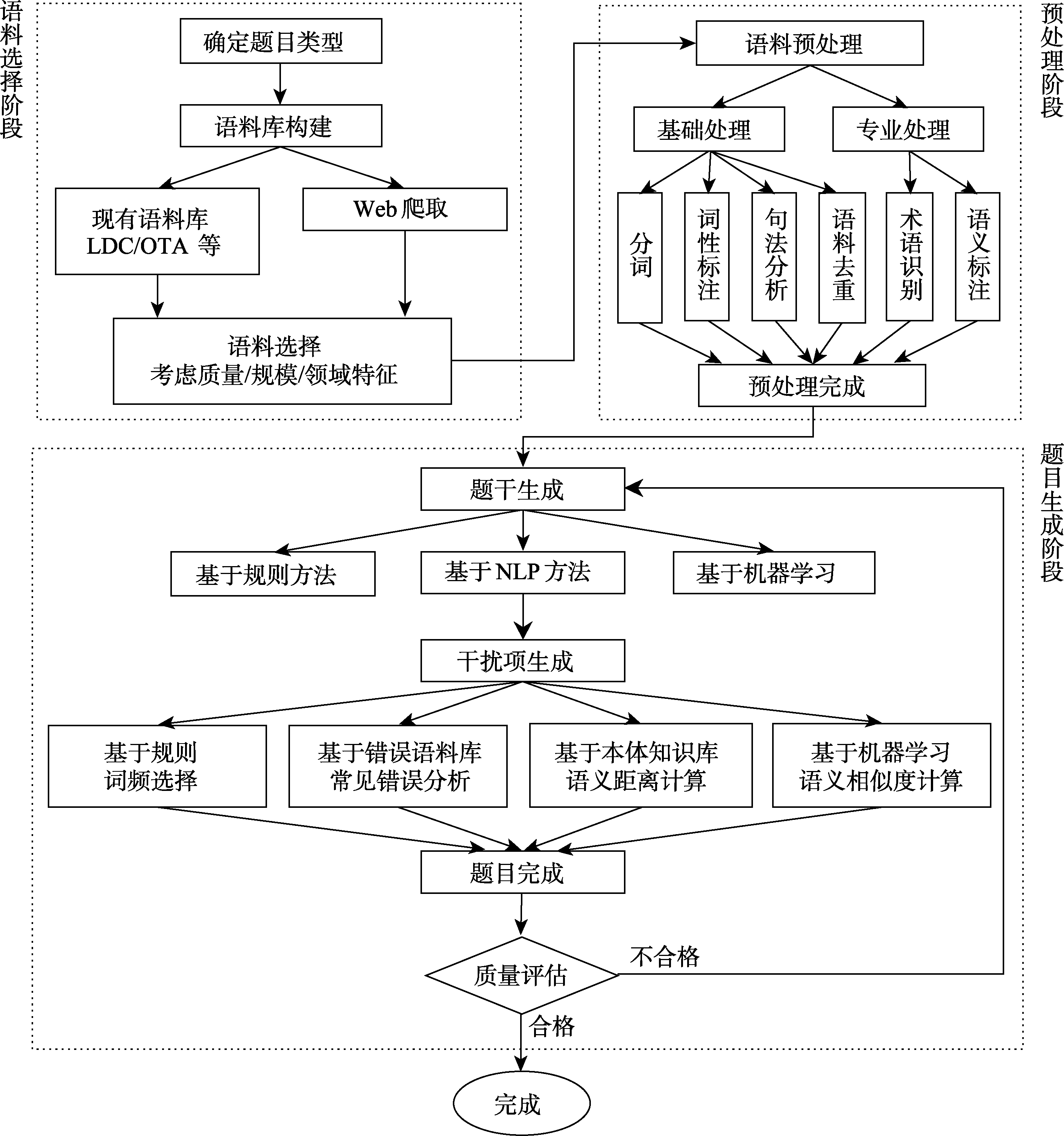 | Zou等人( | BART | 英语阅读理解测验 | 判断题 | 模板基础框架:基于20篇英语文章, 采用7种基础模板(如移除文本中的否定词来生成错误陈述、交换文本中的数字信息来生成错误陈述等)生成判断陈述句; 生成式框架:使用多种掩码选择协议(如遮蔽从属连词、遮蔽句子中宾语等), 再执行文本填充生成判断陈述句 | 专家评估生成题目具有良好的流畅性、语义、相关性和可回答性; 基于模板基础框架生成的题目与原文相关度高, 可回答性好; 基于生成式框架生成的题目流畅性更好, 能生成推理性问题 | ||