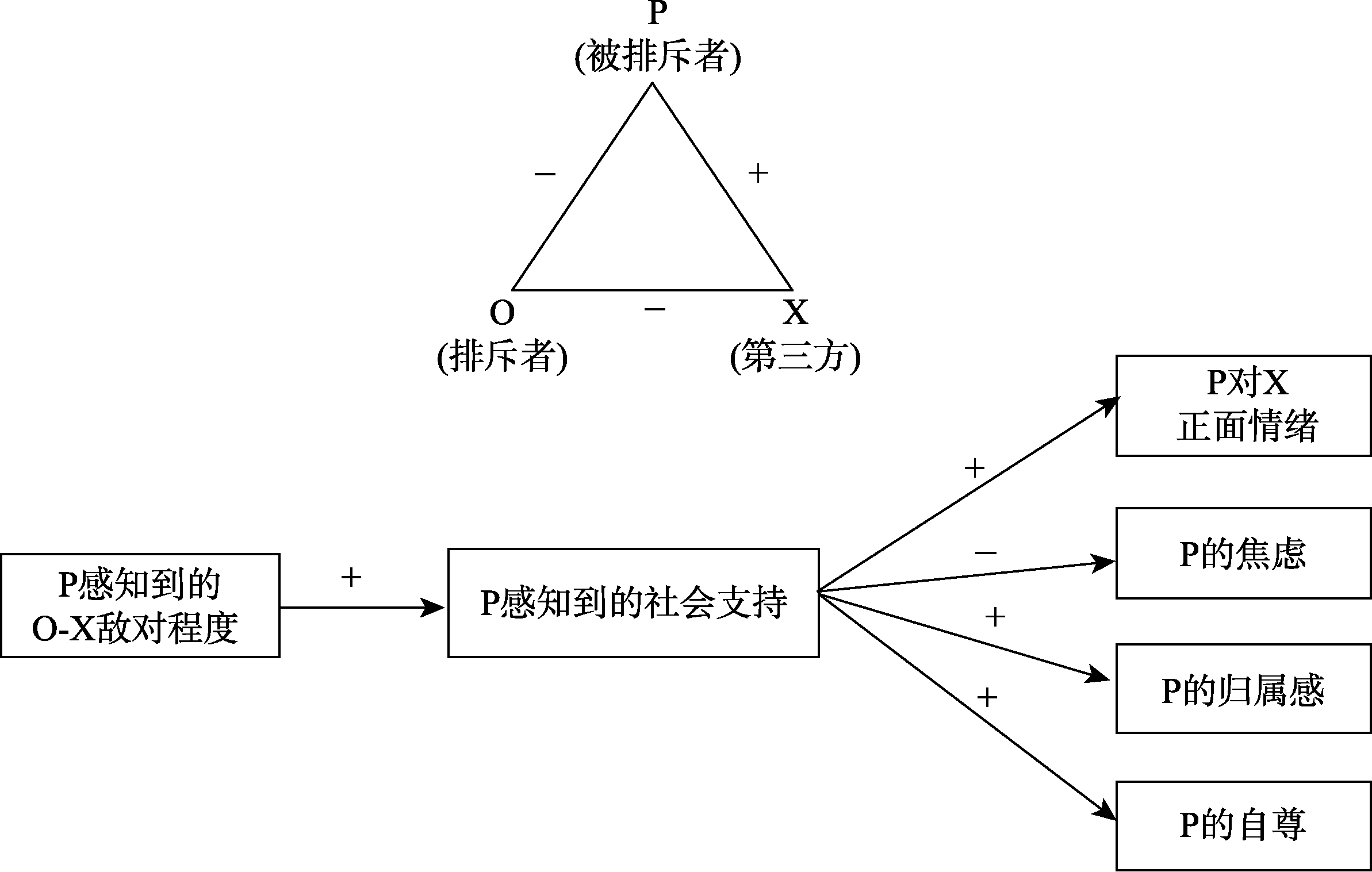 排斥者与第三方关系为负→被排斥者与第三方关系为正