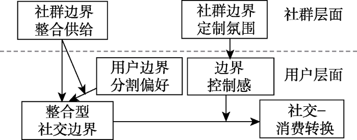 假设1:社群边界整合供给可以促使用户创建整合型社交边界, 进而增加社交-消费转换。