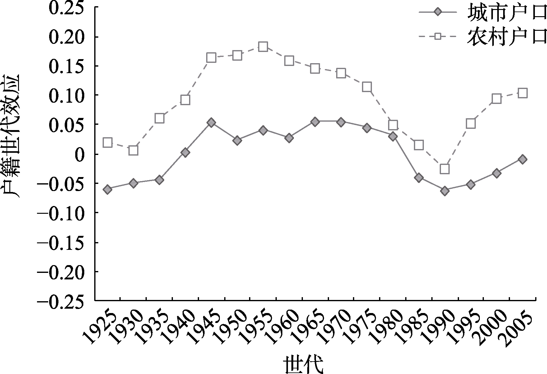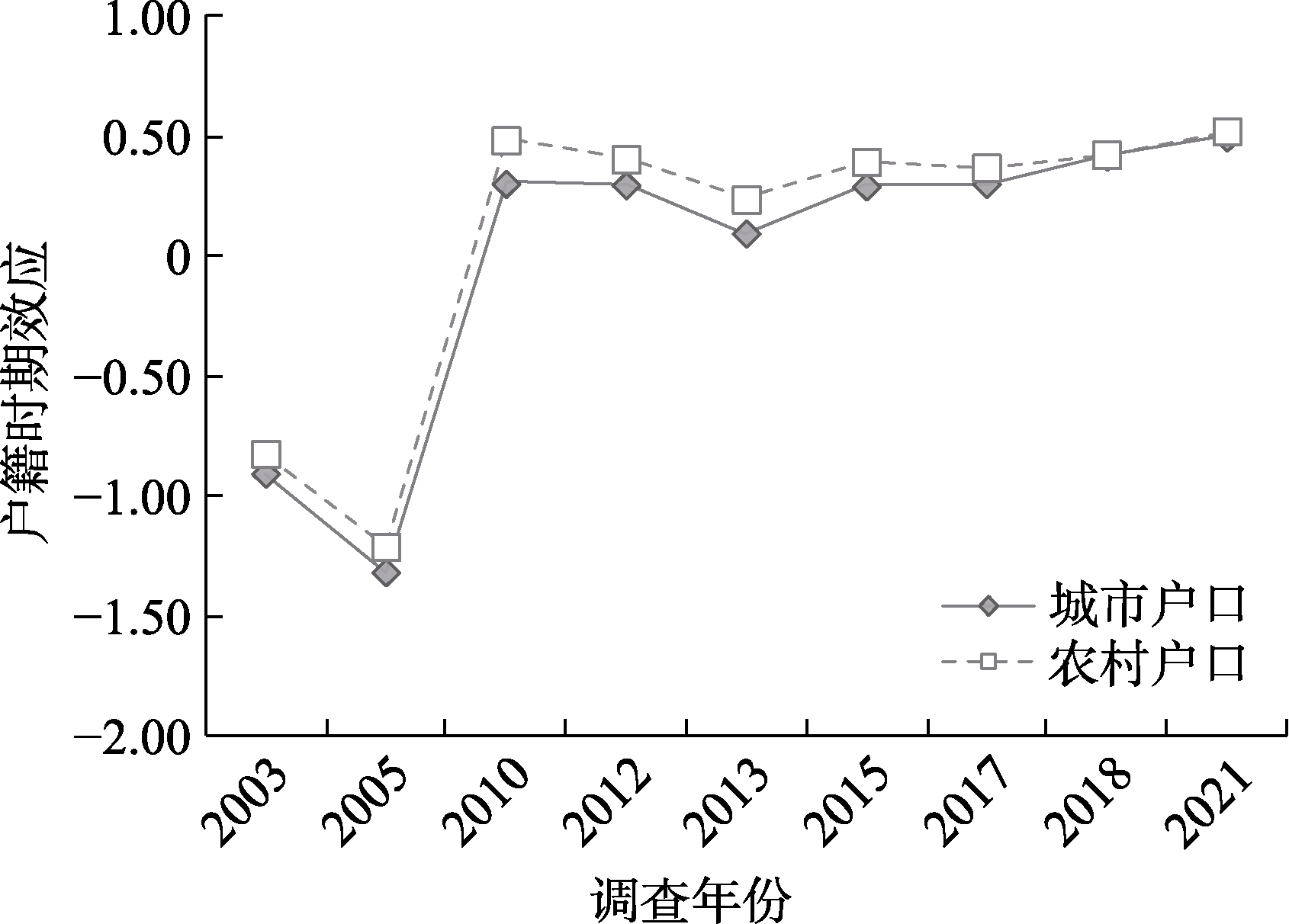| 年龄平方×户籍 | −0.0001** | |||||