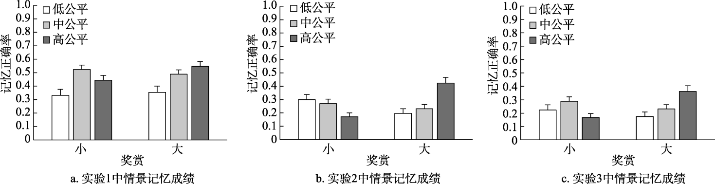 具有适应性的情景记忆在社会合作决策中扮演着关键角色, 然而以往研究在探讨公平如何塑造这种记忆时存在争议, 且常常忽略了奖赏对记忆的额外影响。本研究通过3个实验, 利用独裁者游戏范式, 深入考察了公平对情景记忆的影响, 以及相对奖赏与绝对奖赏在其中的调节作用。研究结果显示, (1)趋近高公平和回避低公平的动机均可能有效增强情景记忆; (2)相对奖赏的大小调节了公平对情景记忆的影响, 被试对大奖赏下的高公平分配以及小奖赏下的低公平分配有更好的记忆效果, 而绝对奖赏则未展现出类似的作用; (3)公平和奖赏都能够通过情景记忆来促进后续合作决策。总体而言, 本研究通过揭示社会性(公平)与非社会性(奖赏)因素间复杂的交互作用, 为理解社会性情景记忆的形成机制提供了新的视角。
