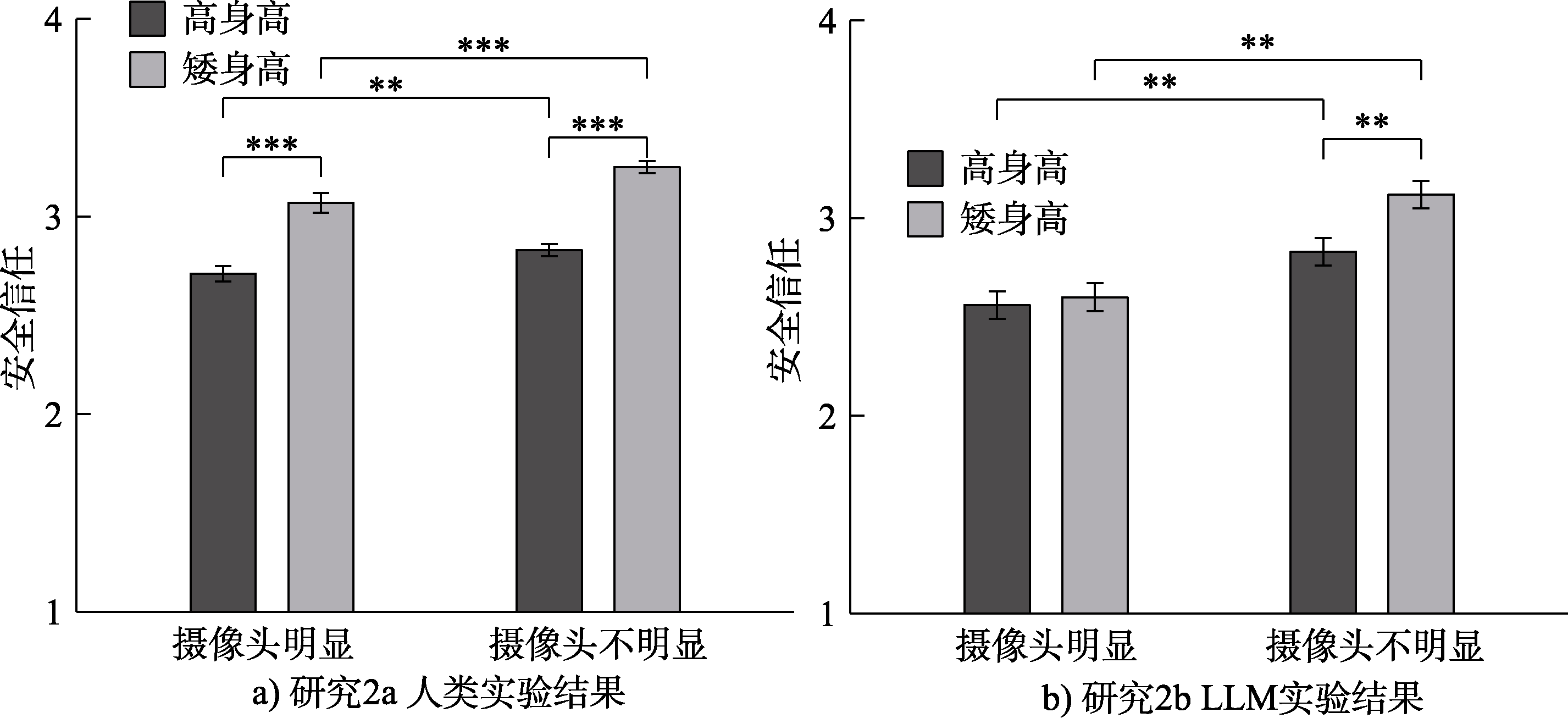 随着智能家居机器人技术的发展, 安全风险成为人机信任的新挑战。本研究提出并验证了智能家居机器人信任的新维度——安全信任。为此, 研究1编制了智能家居机器人安全信任量表, 并验证了人机信任三因子结构的稳定性和信效度。研究2和研究3, 深入分析了机器人的静态和动态特征对人类与人工智能(AI)使用者安全信任的影响。结果发现, 在静态特征上, 人们对身高较矮以及摄像头不明显的机器人安全信任水平更高; 并且机器人拟人化程度影响了人类对这些静态特征的敏感性。在动态特征上, 机器人较慢的运动速度和摄像头关闭动作提高了人类的安全信任, 同时, 不同场景下这些动态特征的影响存在差异。此外, AI与人类在安全信任上表现出一定的一致性, 但总体上AI对机器人摄像头的敏感度低于人类。本研究结果为家居机器人的设计与制造提供了重要的理论支持和实践指导。