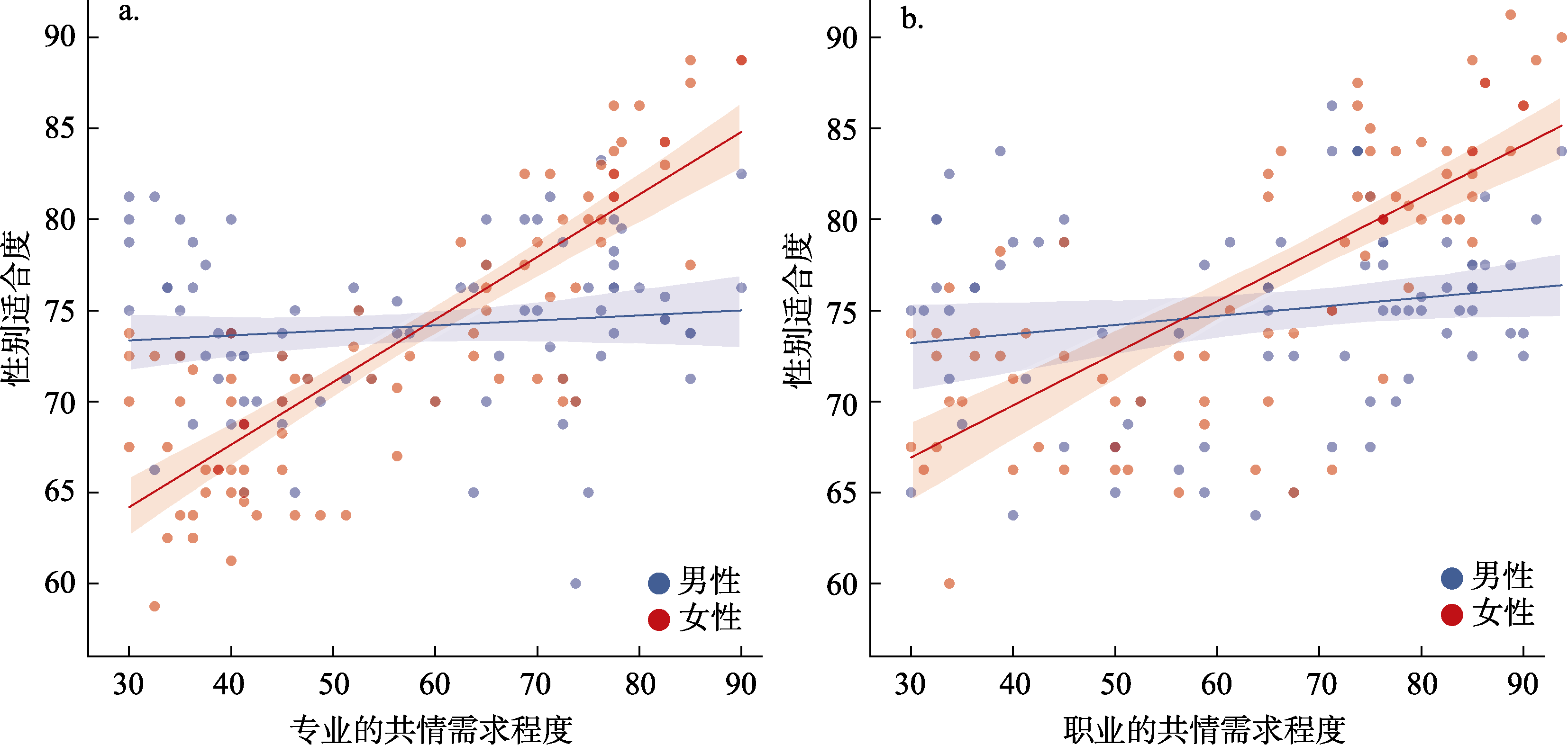 | 共情需求分类(高共情需求−低共情需求)×被推荐者性别(女性−未指明) | 0.46 | 0.08 | [0.30, 0.62] | 5.56 | < 0.001 |