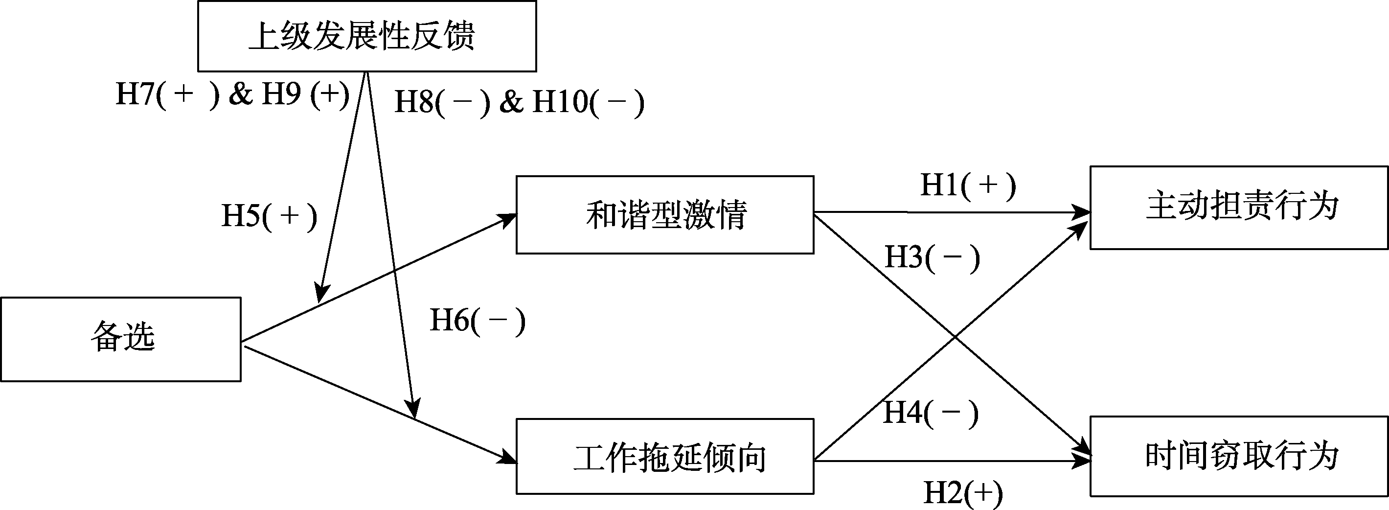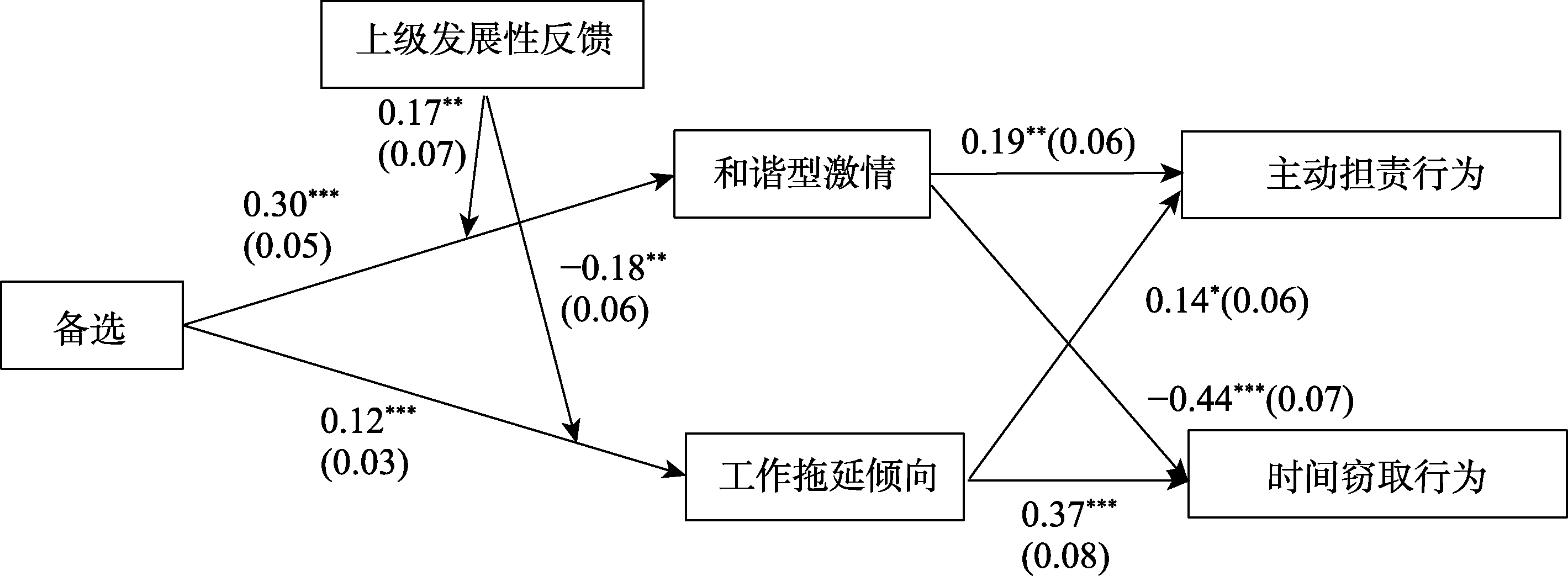 关键词: 备选, 和谐型激情, 工作拖延倾向, 主动担责行为, 时间窃取行为, 上级发展性反馈