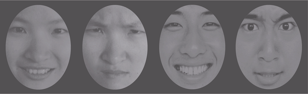 自我(左一、左二)和他人(右一、右二)表情示例图