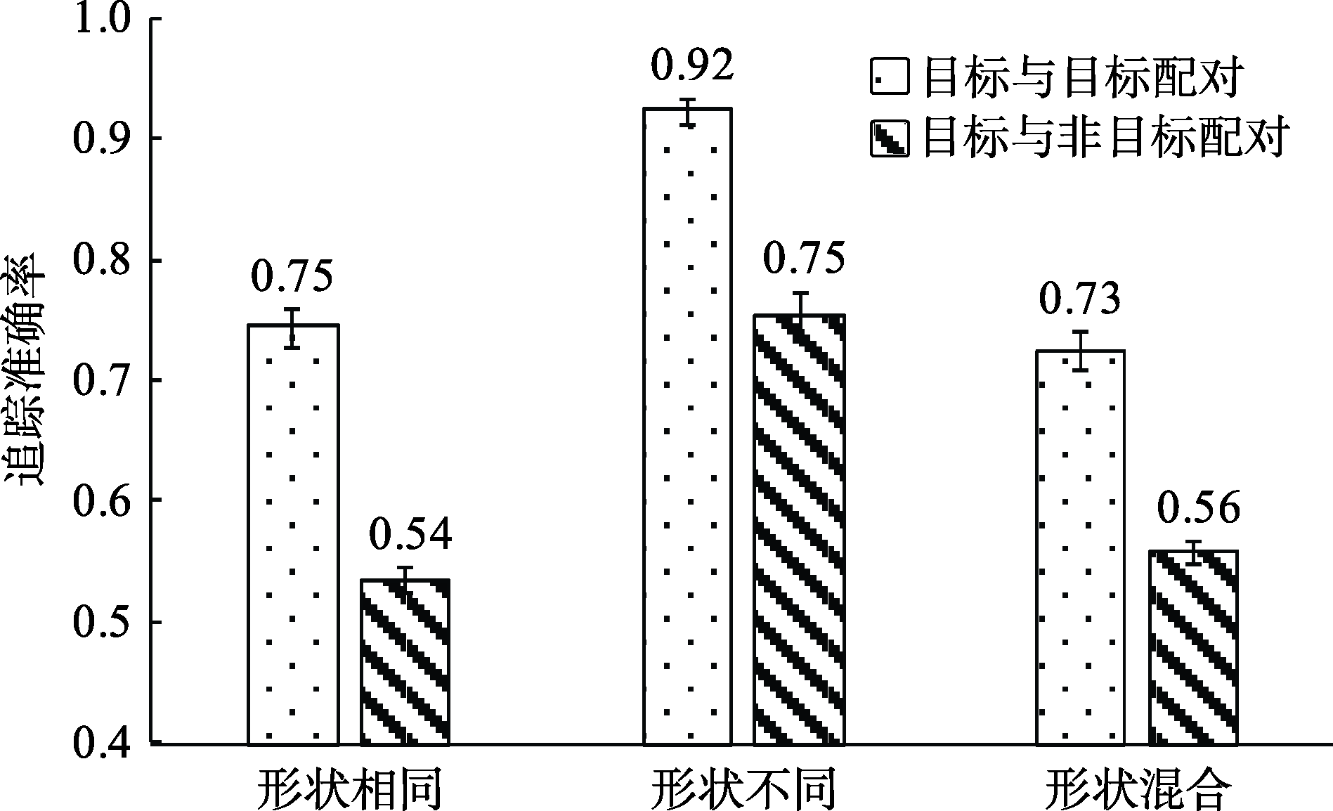 三种形状分组条件下基于运动分组的追踪准确率(误差线为 ± 1
