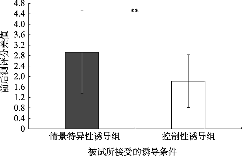 情景特异性诱导组和控制性诱导组老年人前后测的评分差异