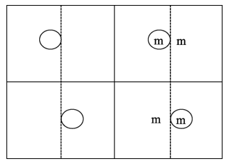 圆圈位置、字母与圈相对位置示意图(虚线表示屏幕中轴线)