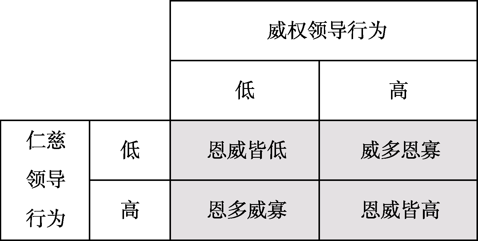 | 图1 恩威并施:仁慈领导行为与权威领导行为的组合情况 |
