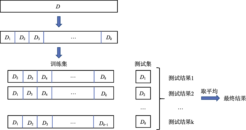 | 图1 图中的D表示原始数据集, D1,D2,…Dk表示将D分成的k个相同大小的子集 |