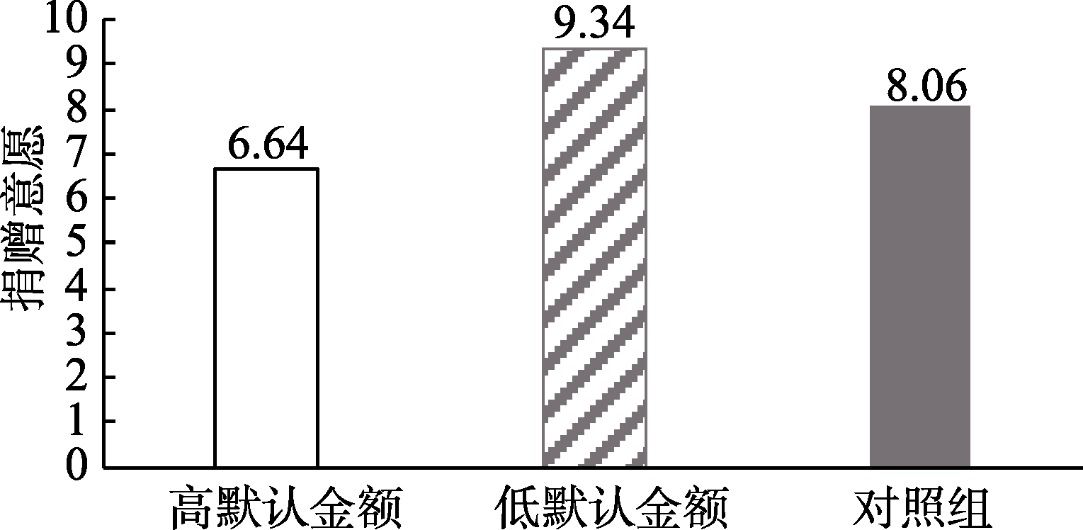不同默认选项金额下的捐赠意愿