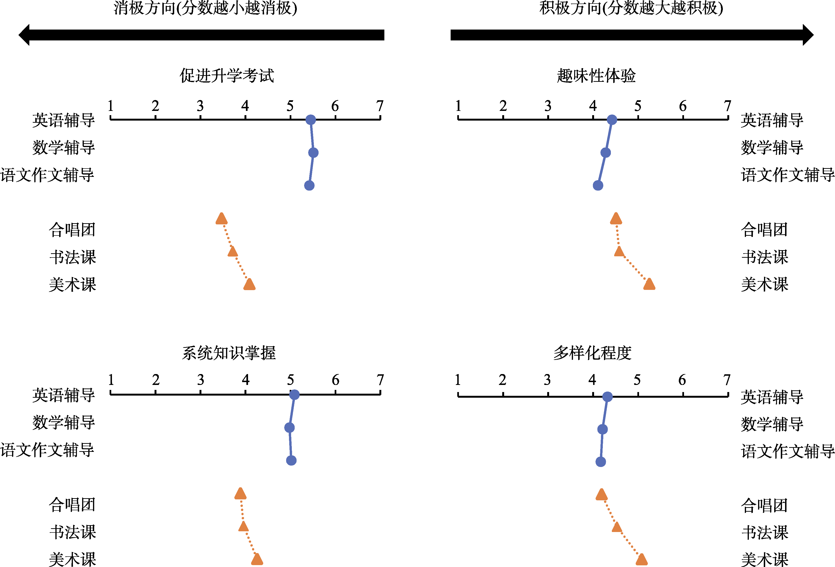 | 图7 基础课和拓展课在不同维度上的积极与消极特征评分(实验3) |