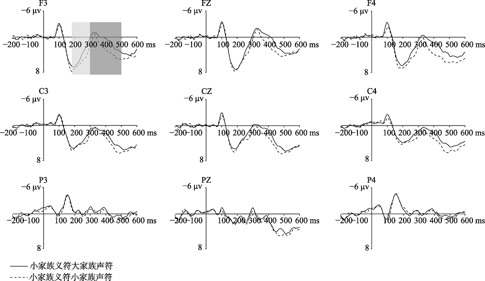 小家族义符水平上大家族声符字与小家族声符字的平均波幅图