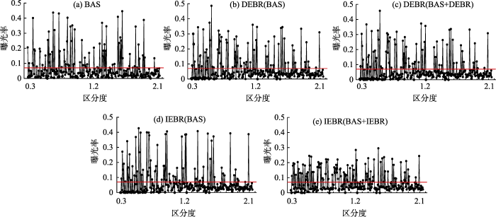 使用BAS生成的第一批已有答题者数据时, 两种推荐策略的选题结果相近, DEBR在精度指标上稍有提升, IEBR进一步降低了卡方值和测验重叠率, 调用的答题者数量基本一致, 低于FMI下的水平。两批数据合并后, DEBR也改善了测验安全和题库使用, IEBR的改善更加明显, 测量精度的波动始终处于合理范围。值得注意的是, 合并后DEBR找到的相似答题者数量翻倍, 使得调用率基本不变, IEBR与合并前调用的答题者数量相同, 调用率则相应缩小一半。