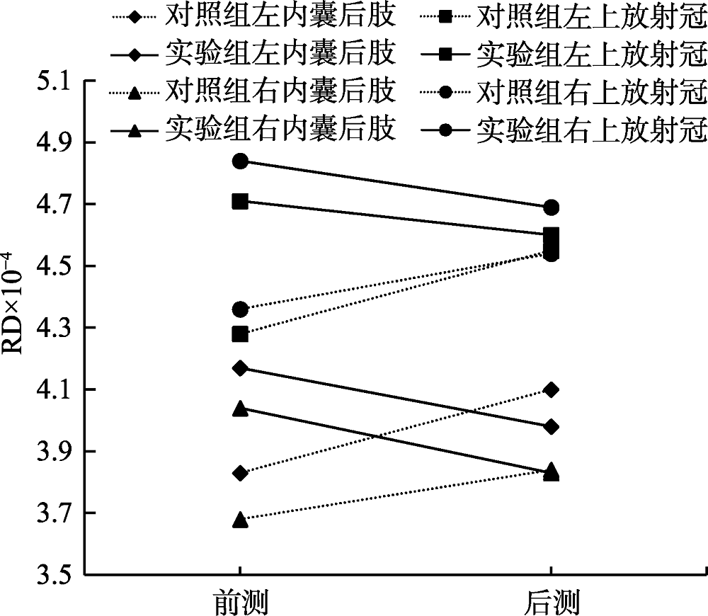 4个ROIs脑区的RD变化图