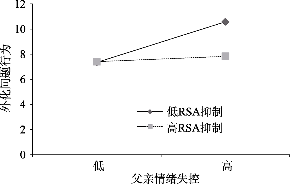 | 图4 RSA抑制对父亲情绪失控与外化问题行为关系的调节作用 |