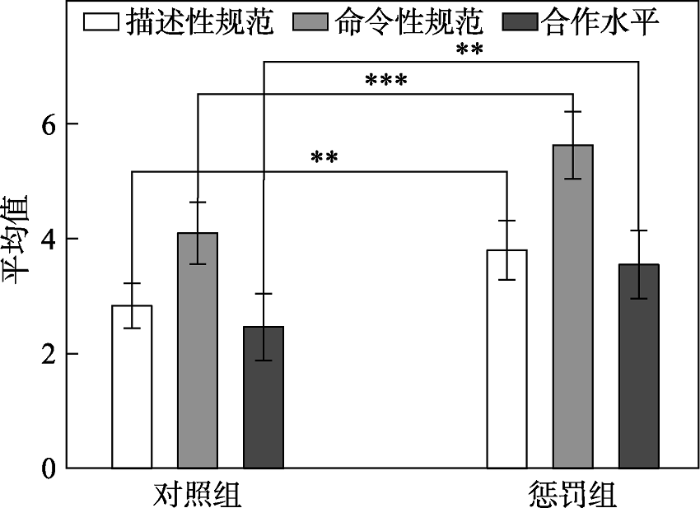 研究问题4:描述性和命令性规范在惩罚通过规范激活影响合作的过程中是否具有相似的作用机制?(实验2和3)