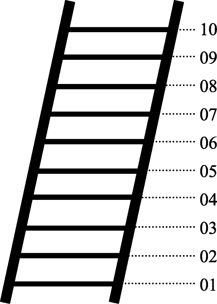 首先请您想象这是一个10级阶梯, 这个梯子代表了人们所处的不同社会阶层。处在阶梯最顶端的人, 生活境况是最优裕的, 他们收入最高、受教育程度最高、工作最体面。处在阶梯最底端的人, 生活境况是最糟糕的, 他们收入最低、受教育程度最低、工作最不体面。您在阶梯所处的位置越高, 说明您越接近顶端的人群; 您在阶梯所处的位置越低, 说明您越接近底端的人群。现在, 请结合您的状况, 思考一下, 您觉得自己位于梯子的哪一级?