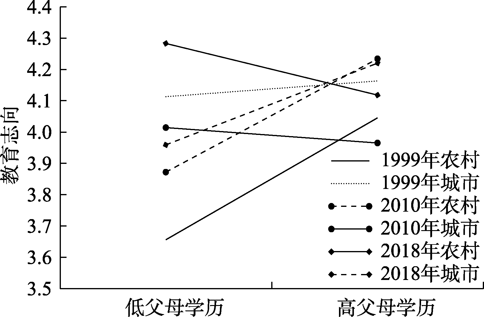 | 图5 年代和城乡对父母学历与教育志向关系的调节 |