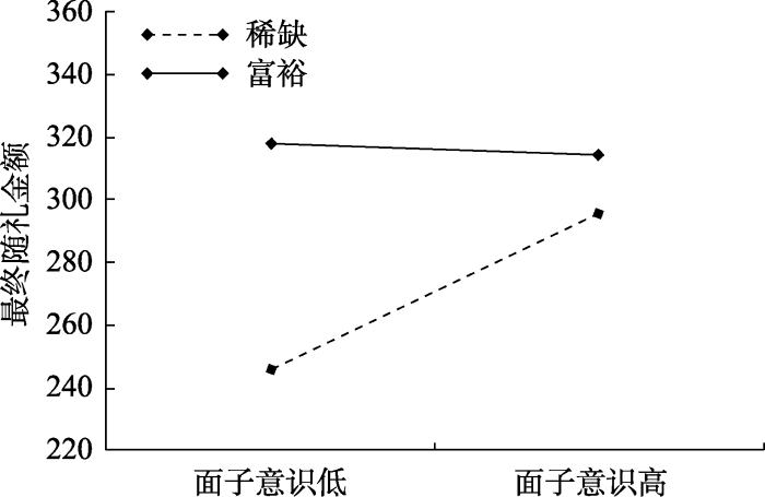 (2)面子意识在物质稀缺与慷慨行为之间的调节作用